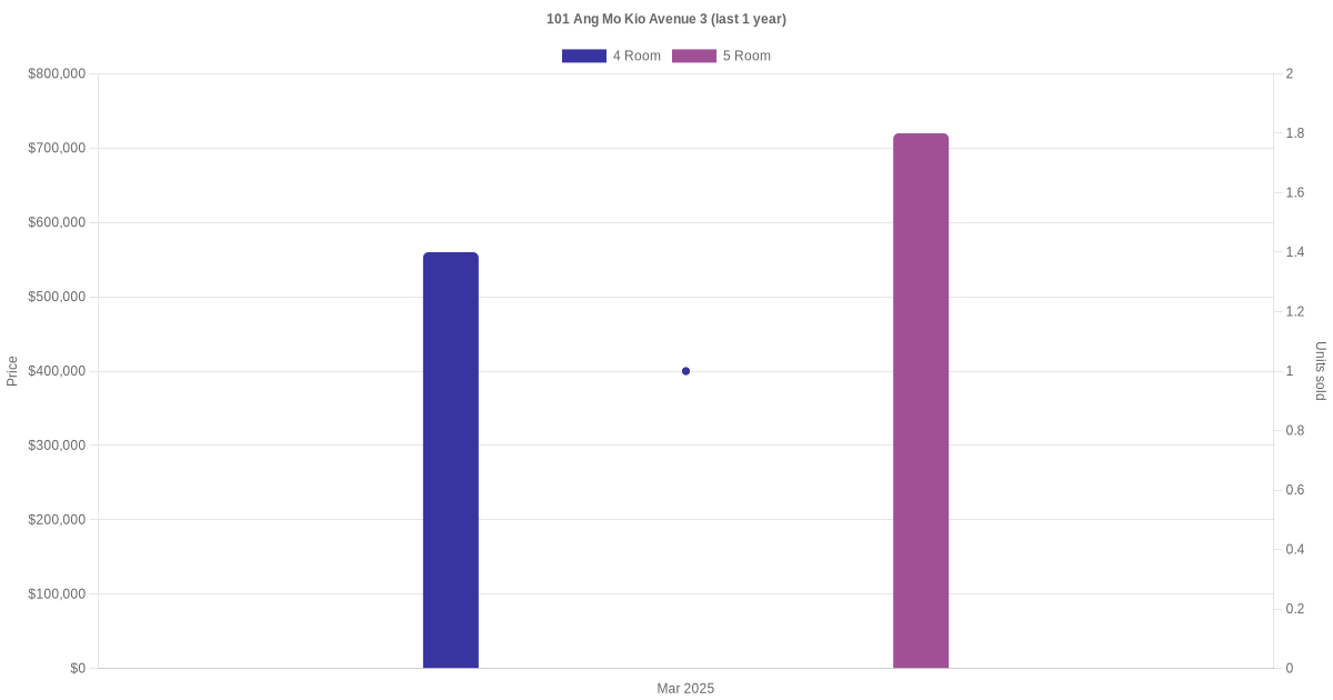 | Sep 2025 | $4,050 | 5 Room | Blk 101 Ang Mo Kio Avenue 3 5 Room | Ang Mo Kio |