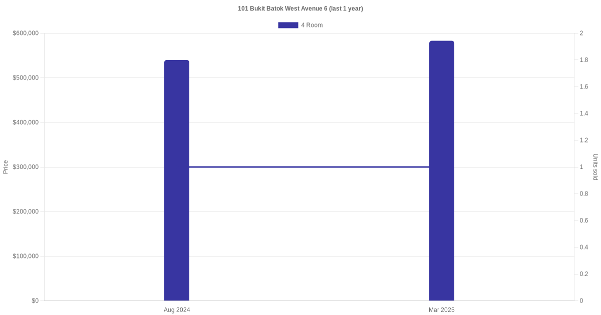 There were a total of 4 resale transactions in the last 3 years for units in block 101 Bukit Batok West Avenue 6, with the latest one recorded in Sep 2025.