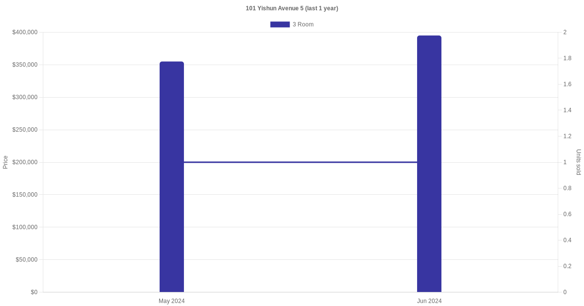 Below is a quick summary of the resale transactions volume and average price trends for the 3 room units at 101 Yishun Avenue 5.