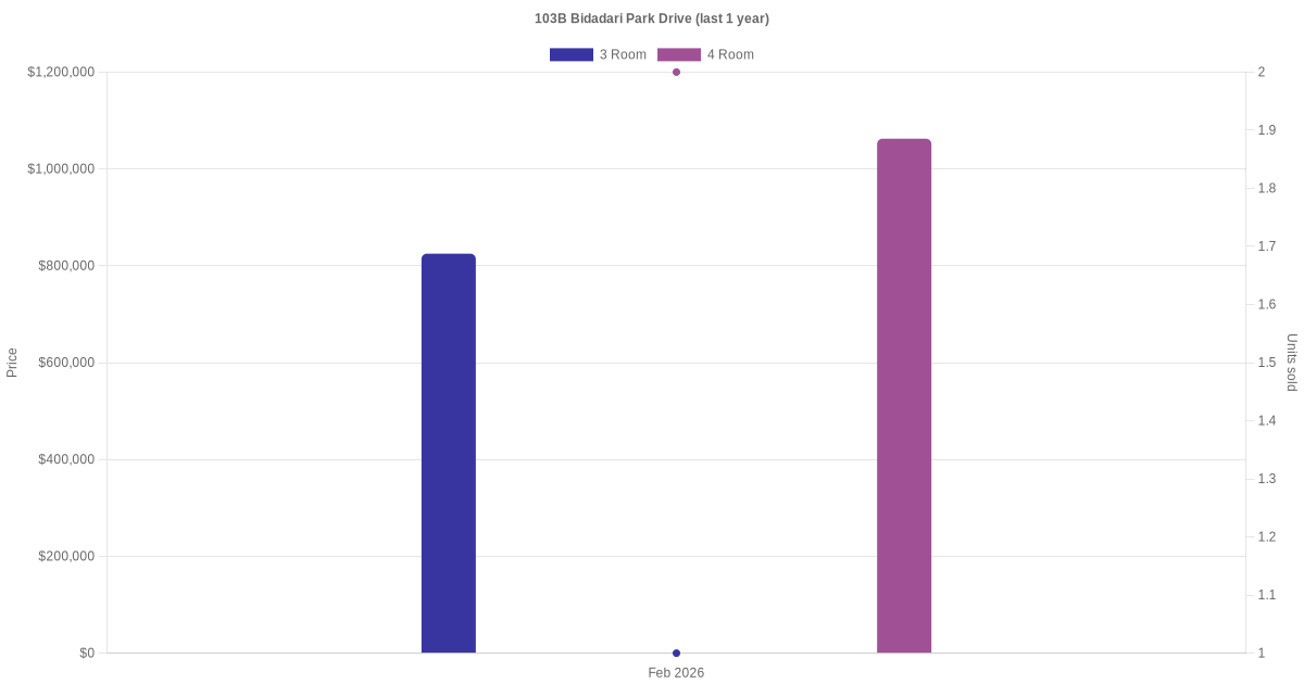 There were a total of 3 resale transactions in the last 3 years for units in block 103B Bidadari Park Drive, with the latest one recorded in Feb 2026.