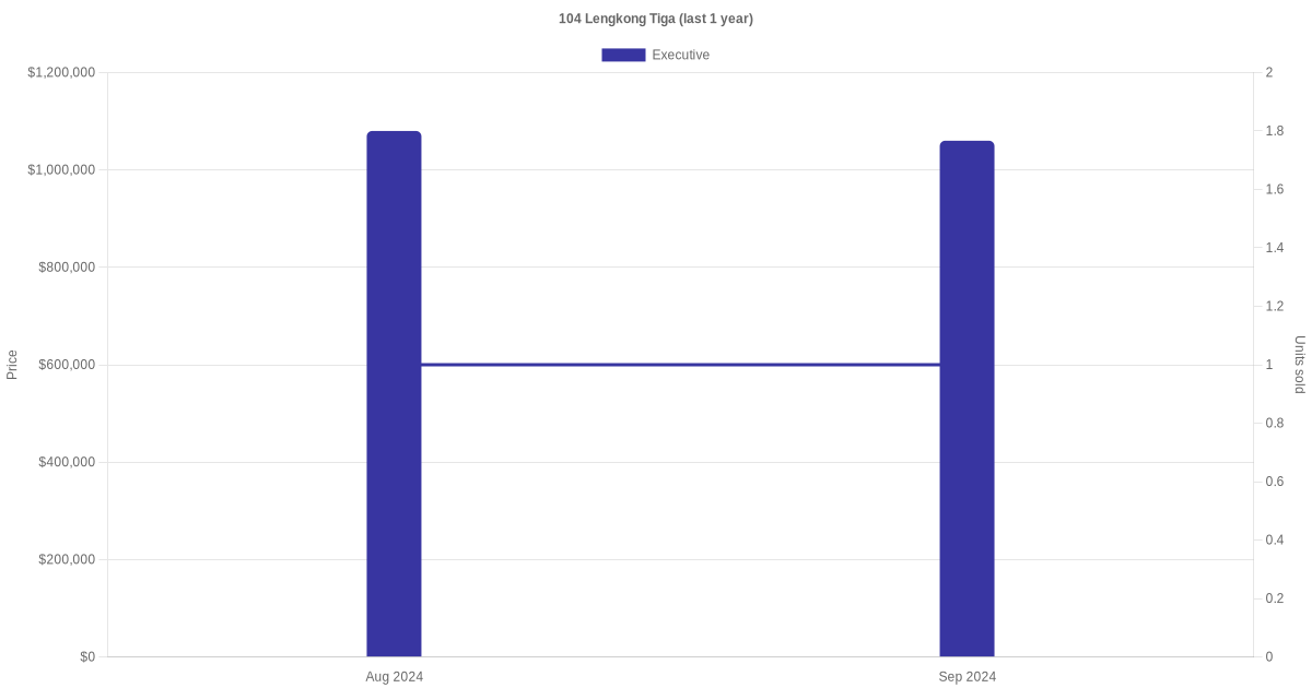 There were a total of 5 resale transactions in the last 3 years for units in block 104 Lengkong Tiga, with the latest one recorded in Sep 2024.