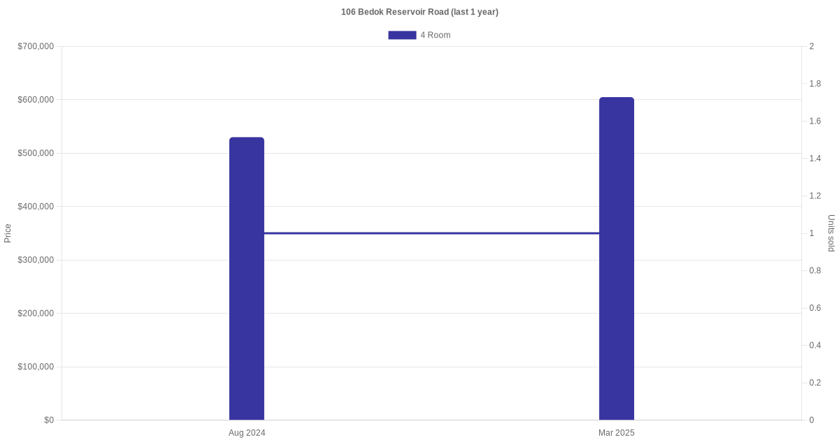| Mar 2025 | $3,500 | 4 Room | Blk 106 Bedok Reservoir Road 4 Room | Bedok |