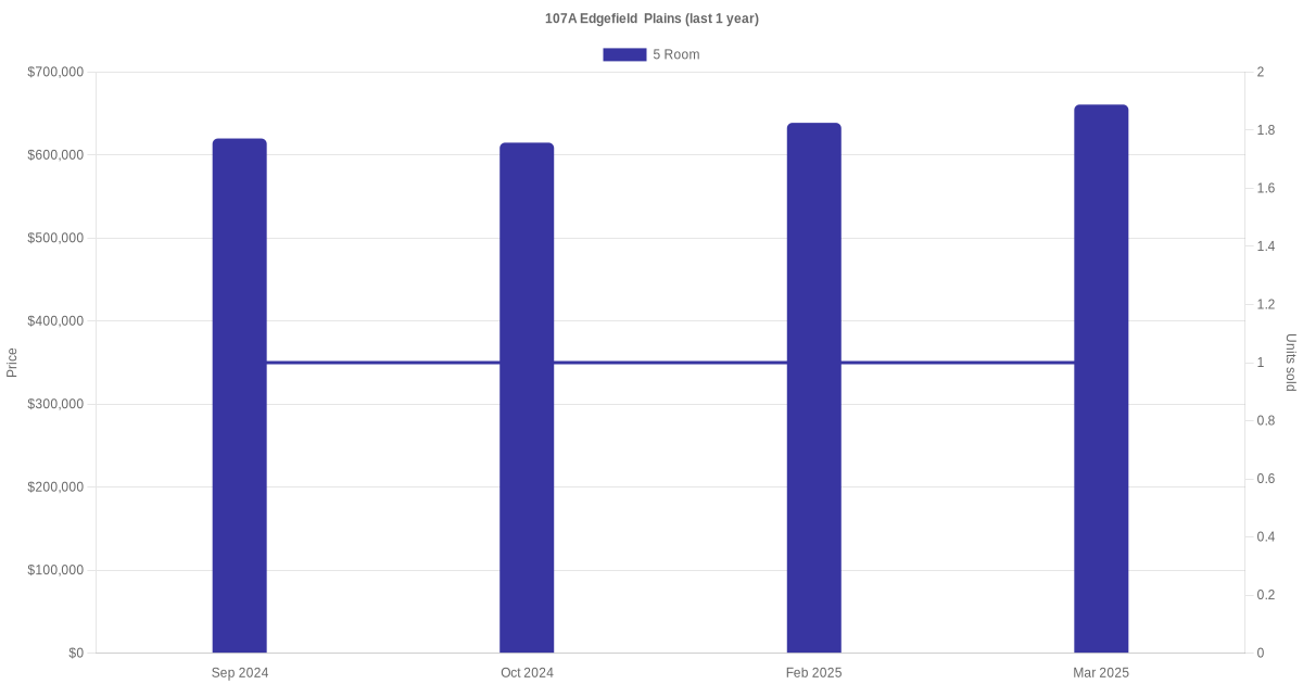 Below is a quick summary of the resale transactions volume and average price trends for the 5 room units at 107A Edgefield Plains.