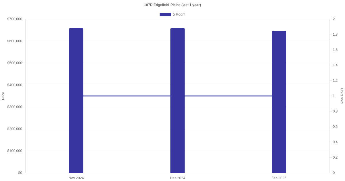 Below is a quick summary of the resale transactions volume and average price trends for the 5 room units at 107D Edgefield Plains.