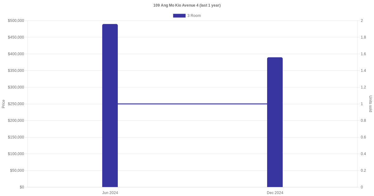 | Dec 2023 | $2,700 | 3 Room | Blk 109 Ang Mo Kio Avenue 4 3 Room | Ang Mo Kio |