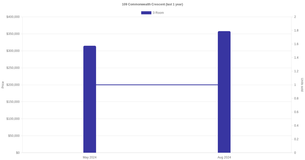 There were a total of 4 resale transactions in the last 3 years for units in block 109 Commonwealth Crescent, with the latest one recorded in Apr 2025.