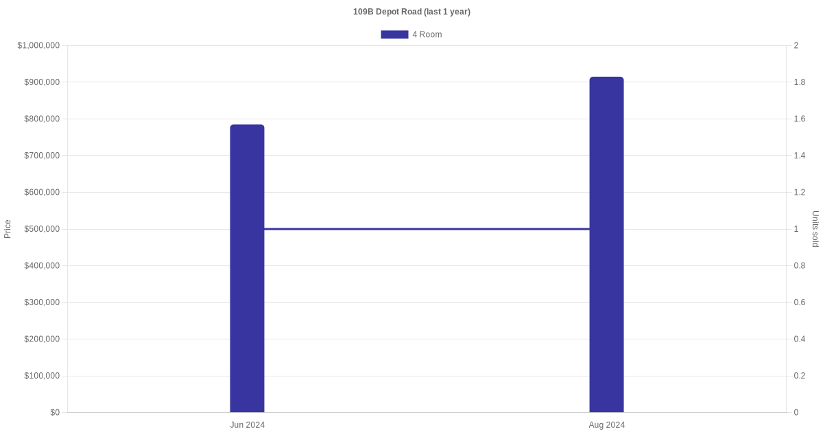 Below is a quick summary of the resale transactions volume and average price trends for the 4 room and 5 room units at 109B Depot Road.