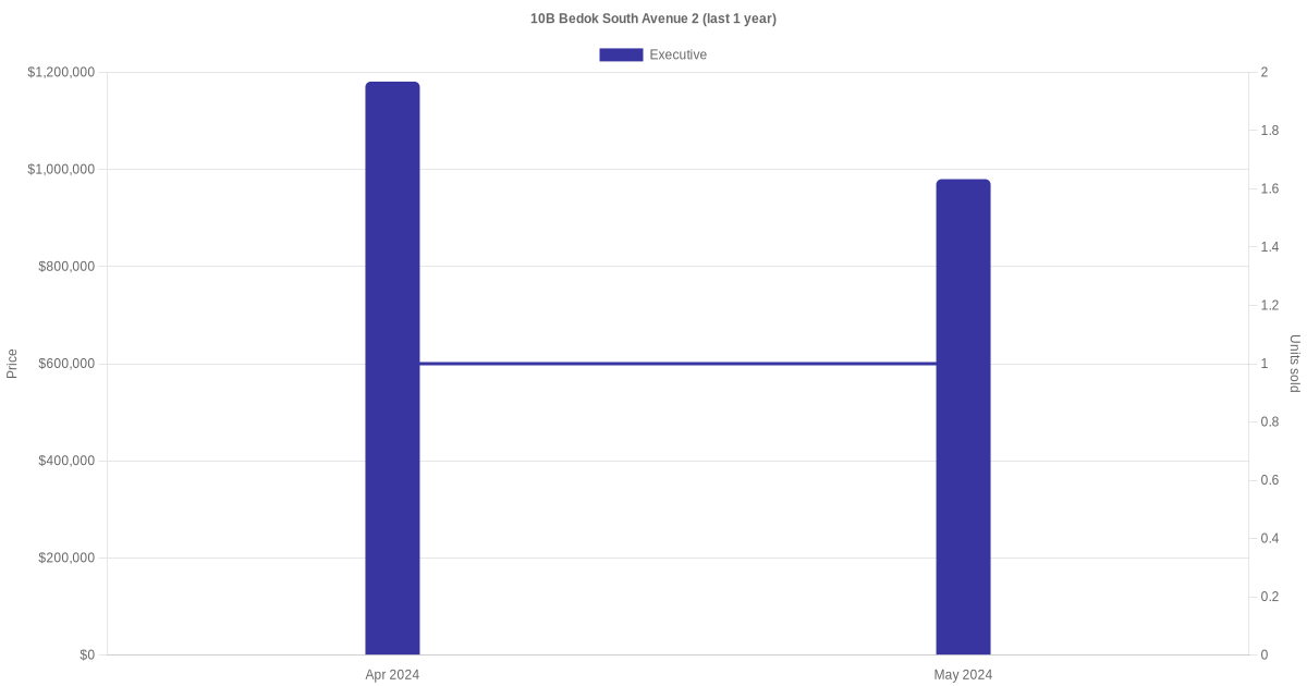 Below is a quick summary of the resale transactions volume and average price trends for the executive units at 10B Bedok South Avenue 2.