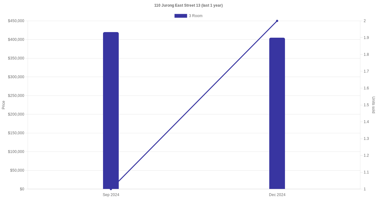 | Dec 2024 | $2,300 | 3 Room | Blk 110 Jurong East Street 13 3 Room | Jurong East |