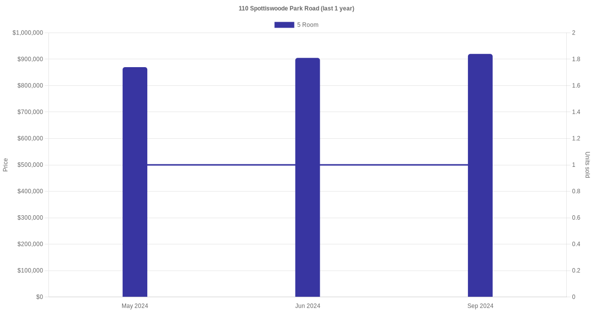 Below is a quick summary of the resale transactions volume and average price trends for the 5 room units at 110 Spottiswoode Park Road.
