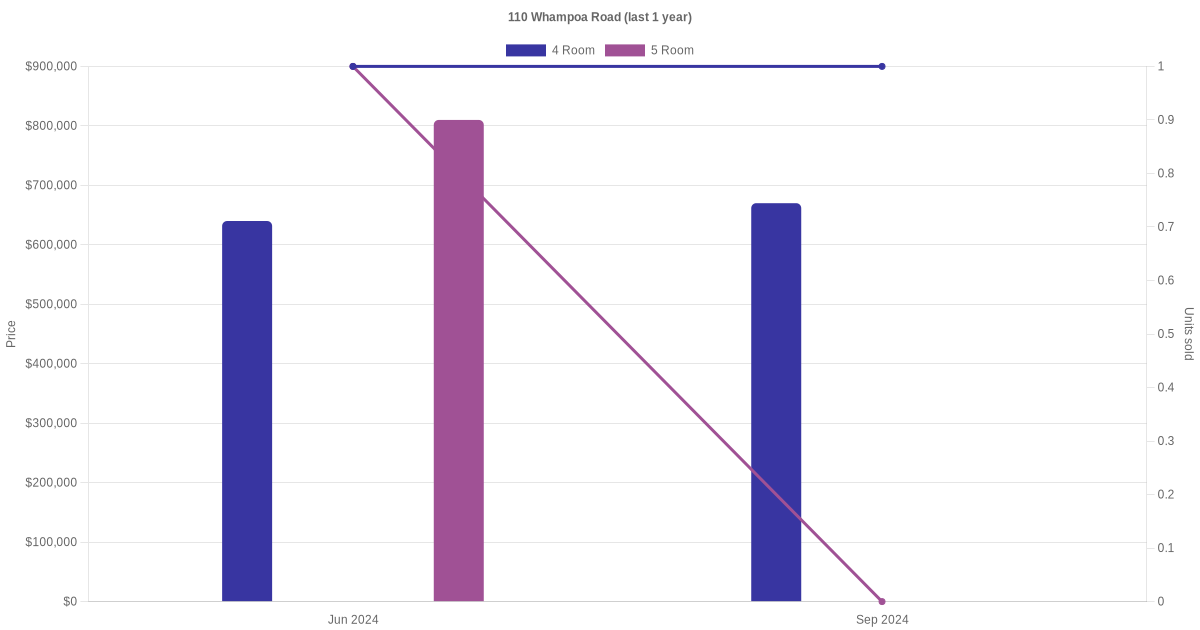 Below is a quick summary of the resale transactions volume and average price trends for the 4 room and 5 room units at 110 Whampoa Road.