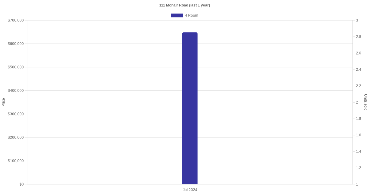 Below is a quick summary of the resale transactions volume and average price trends for the 3 room and 4 room units at 111 Mcnair Road.
