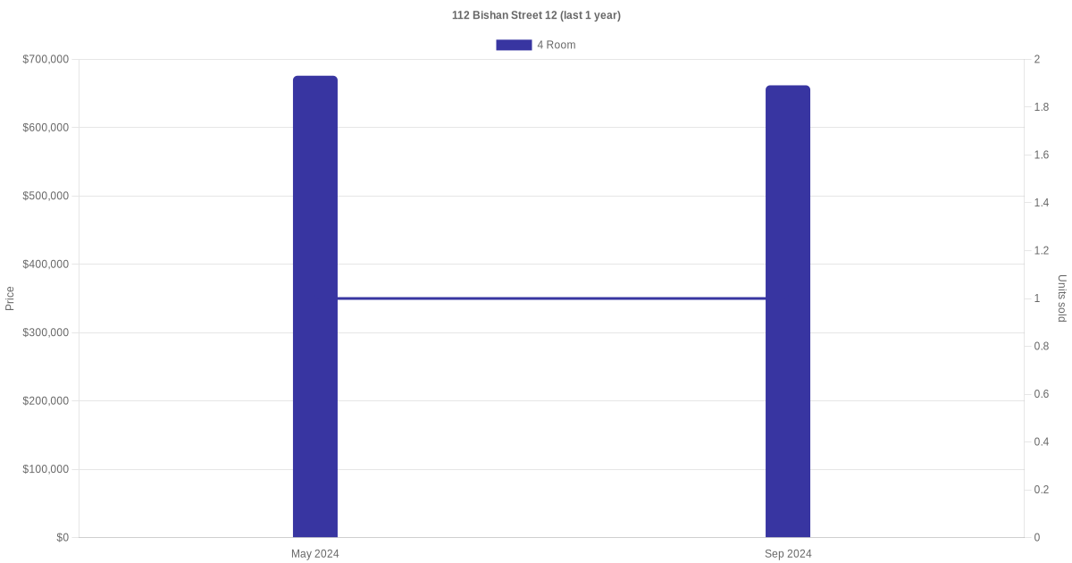 | Sep 2024 | $3,800 | 4 Room | Blk 112 Bishan Street 12 4 Room | Bishan |