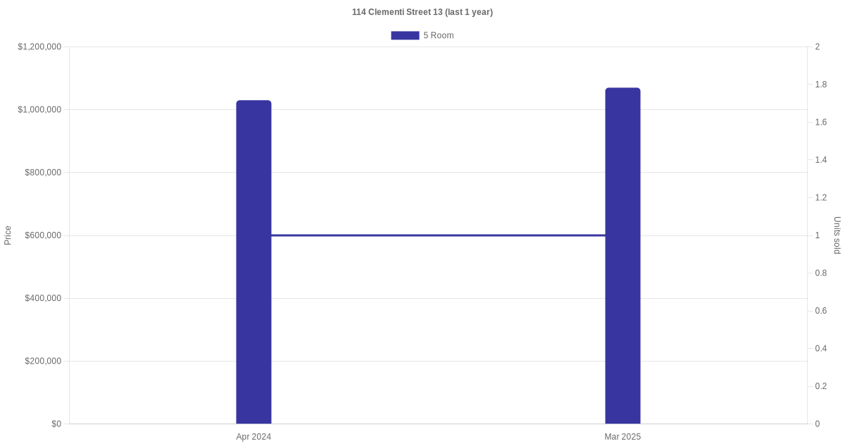 | Mar 2025 | $4,000 | 5 Room | Blk 114 Clementi Street 13 5 Room | Clementi |