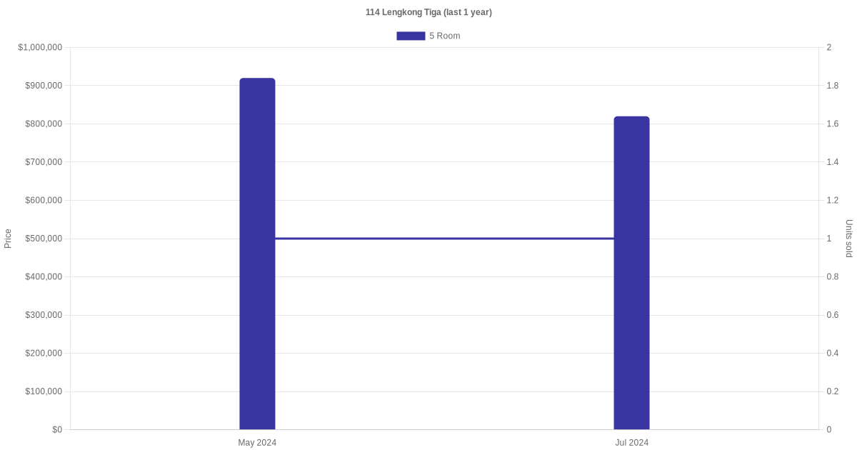 Below is a quick summary of the resale transactions volume and average price trends for the 5 room units at 114 Lengkong Tiga.