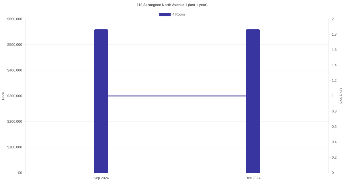 Below is a quick summary of the resale transactions volume and average price trends for the 4 room units at 118 Serangoon North Avenue 1.