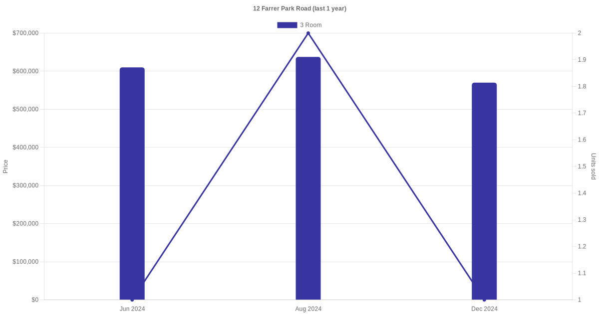 Below is a quick summary of the resale transactions volume and average price trends for the 3 room and 4 room units at 12 Farrer Park Road.