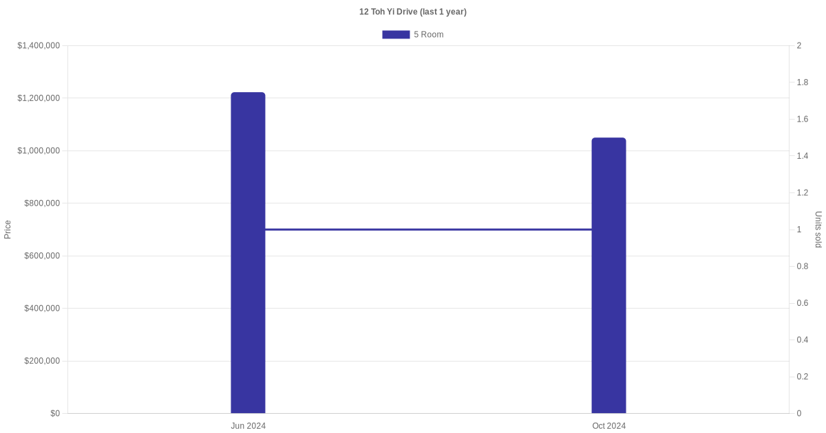 Below is a quick summary of the resale transactions volume and average price trends for the 4 room and 5 room units at 12 Toh Yi Drive.