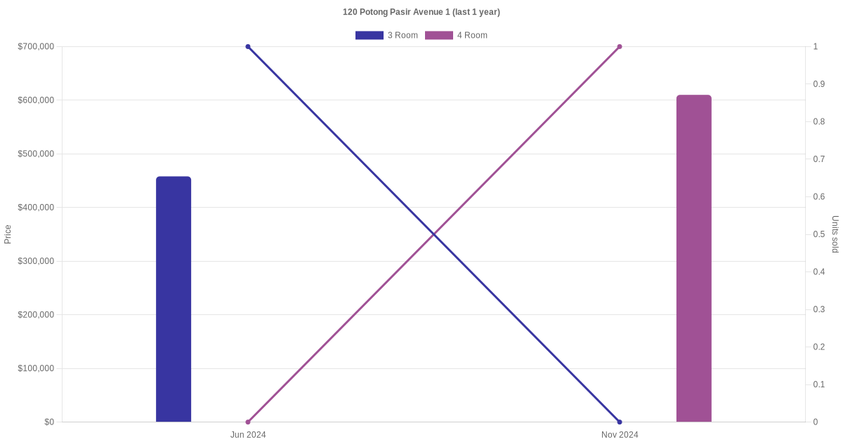 There were a total of 4 resale transactions in the last 3 years for units in block 120 Potong Pasir Avenue 1, with the latest one recorded in Jan 2026.