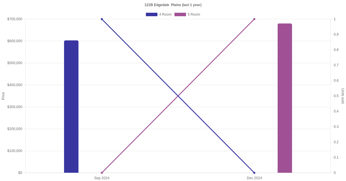 Below is a quick summary of the resale transactions volume and average price trends for the 3 room, 4 room and 5 room units at 122B Edgedale Plains.