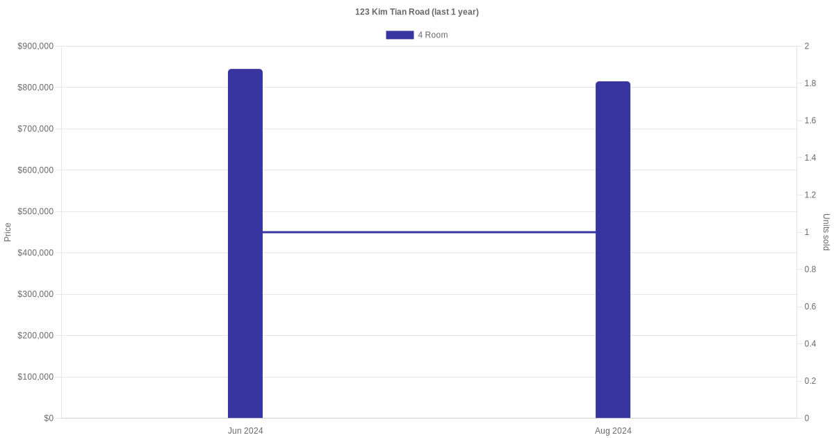 Below is a quick summary of the resale transactions volume and average price trends for the 4 room and 5 room units at 123 Kim Tian Road.