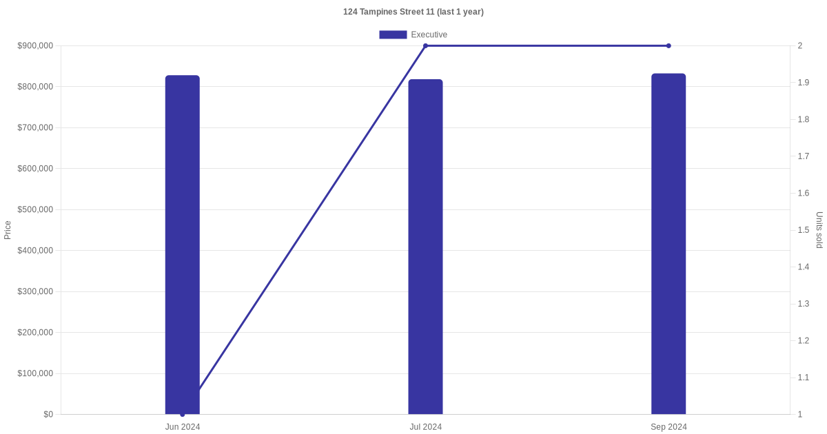 | Mar 2024 | $4,600 | Executive | Blk 124 Tampines Street 11 Executive | Tampines |