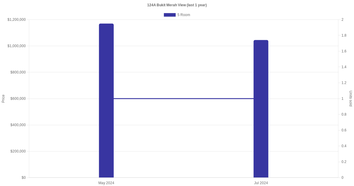 Below is a quick summary of the resale transactions volume and average price trends for the 5 room units at 124A Bukit Merah View.