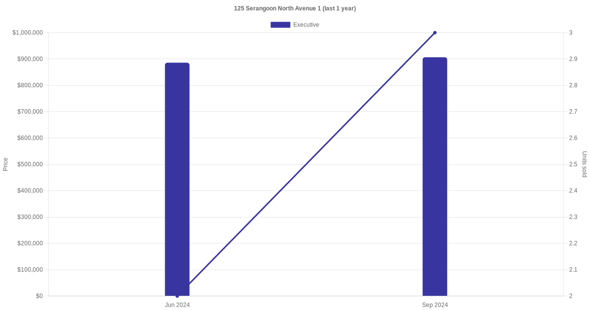 Below is a quick summary of the resale transactions volume and average price trends for the executive units at 125 Serangoon North Avenue 1.