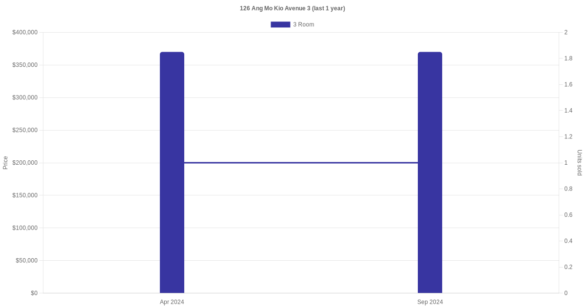 There were a total of 4 resale transactions in the last 3 years for units in block 126 Ang Mo Kio Avenue 3, with the latest one recorded in Sep 2024.