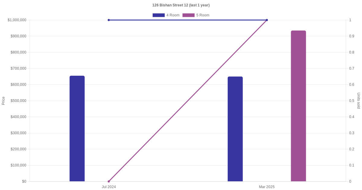There were a total of 5 resale transactions in the last 3 years for units in block 126 Bishan Street 12, with the latest one recorded in Mar 2025.