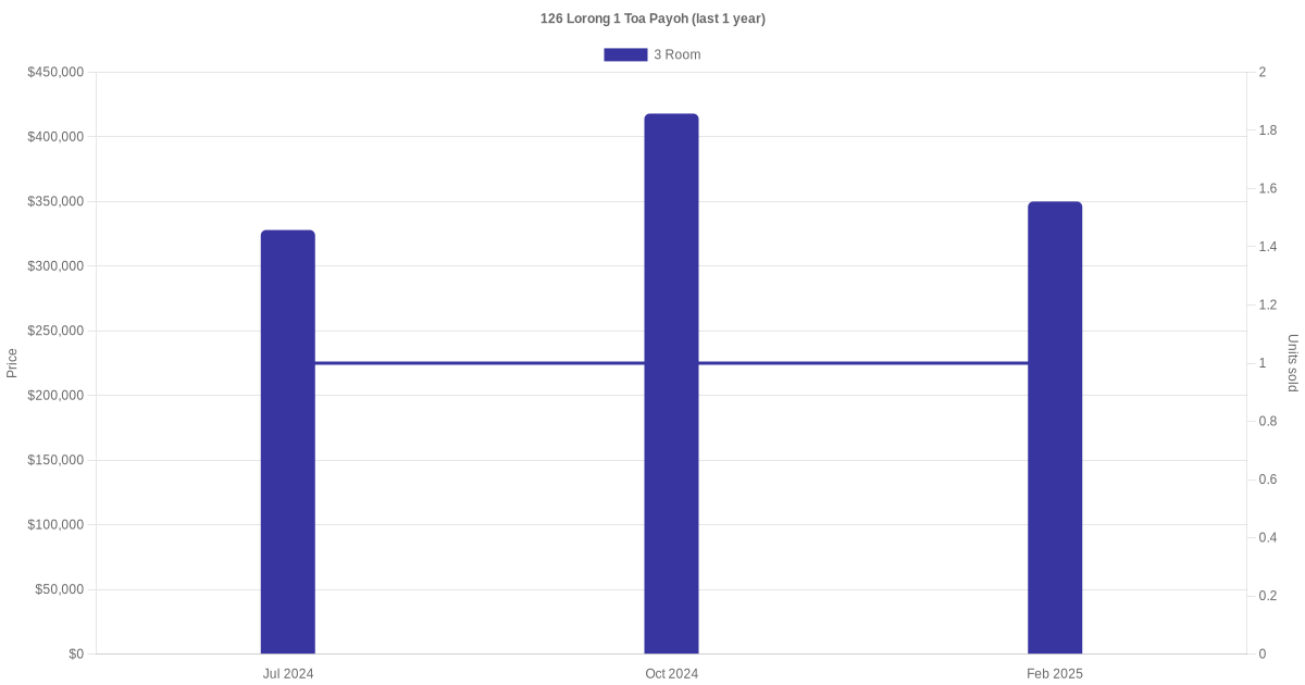 | Mar 2025 | $1,800 | 3 Room | Blk 126 Lorong 1 Toa Payoh 3 Room | Toa Payoh |