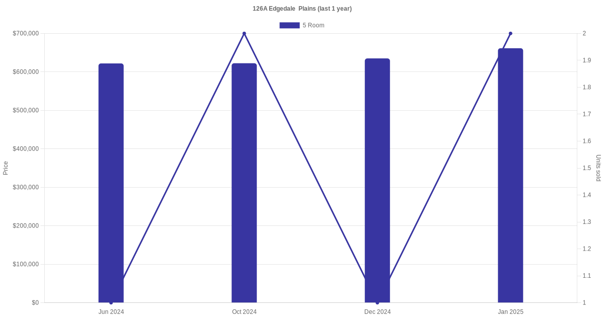 Below is a quick summary of the resale transactions volume and average price trends for the 4 room and 5 room units at 126A Edgedale Plains.