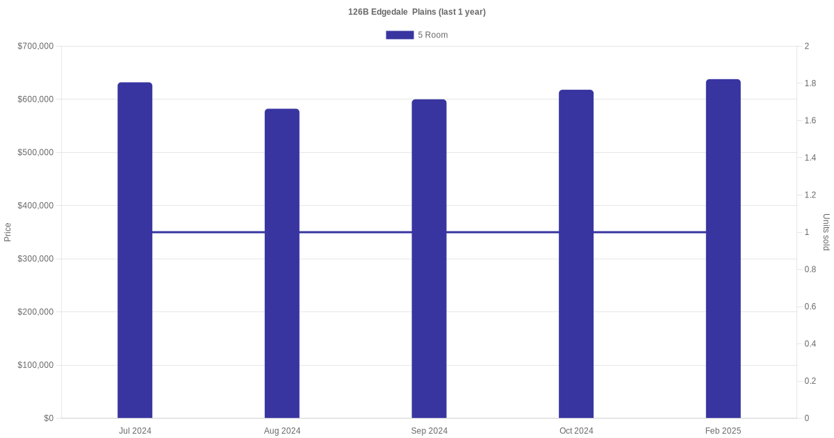 Below is a quick summary of the resale transactions volume and average price trends for the 5 room units at 126B Edgedale Plains.