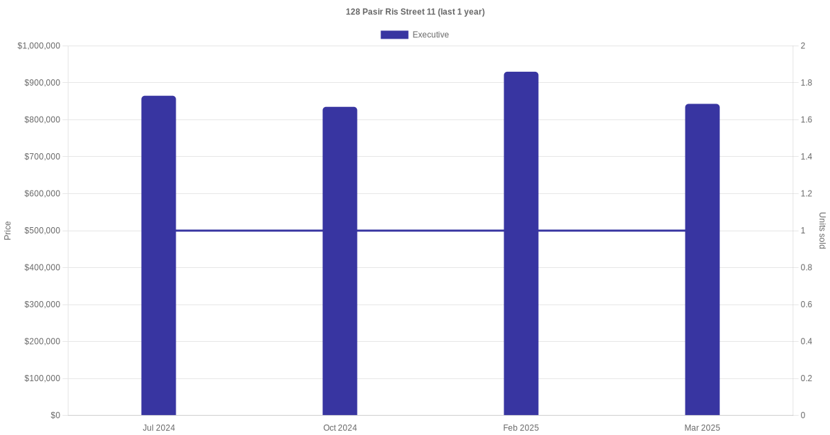 Below is a quick summary of the resale transactions volume and average price trends for the executive units at 128 Pasir Ris Street 11.