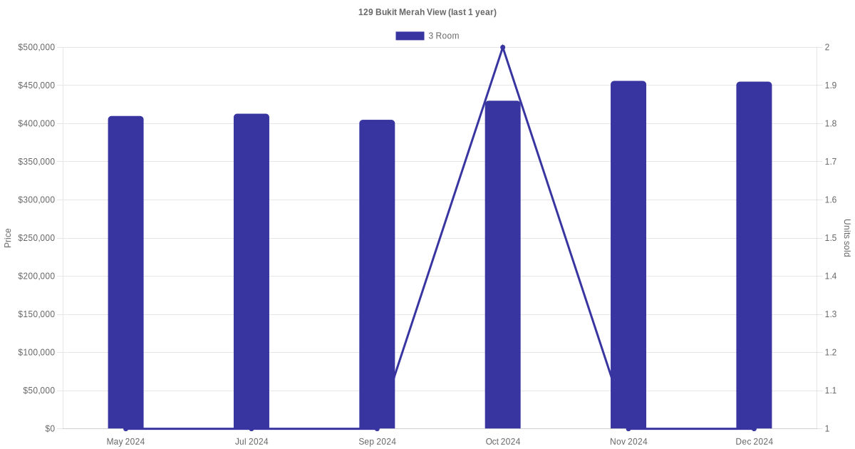 | Dec 2024 | $3,300 | 3 Room | Blk 129 Bukit Merah View 3 Room | Bukit Merah |