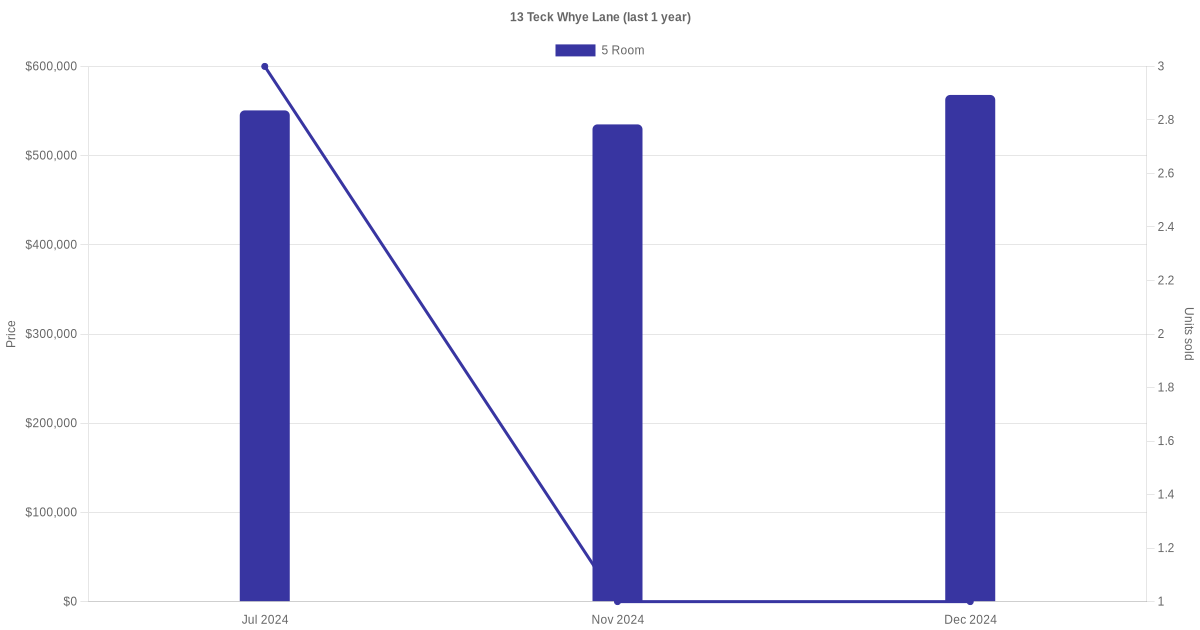 Below is a quick summary of the resale transactions volume and average price trends for the 5 room units at 13 Teck Whye Lane.