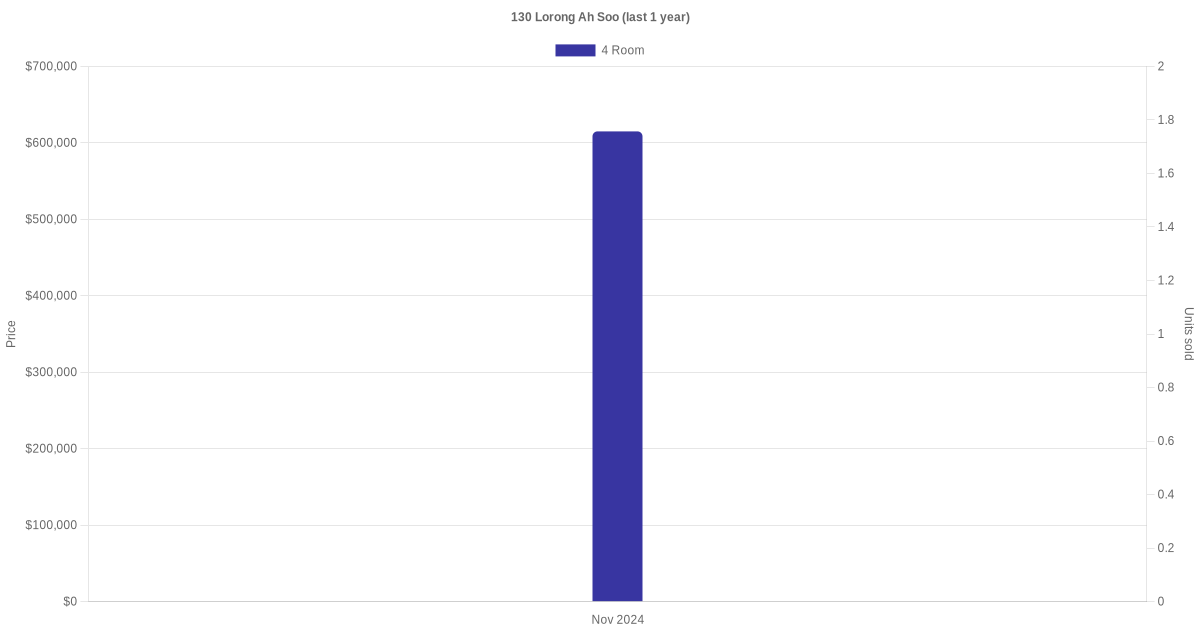 There were a total of 2 resale transactions in the last 3 years for units in block 130 Lorong Ah Soo, with the latest one recorded in Nov 2024.