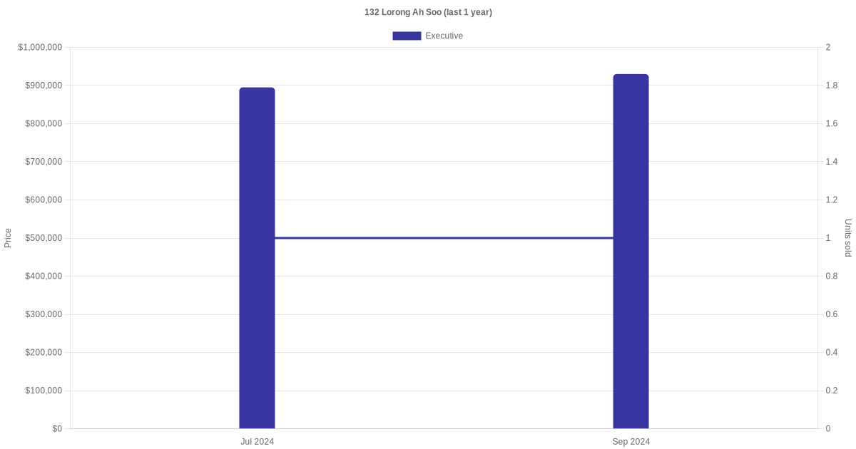 | Jul 2024 | $895,000 | $5,927 | Executive | Blk 132 Lorong Ah Soo Executive / 151 sqm | 10 to 12 | 151 sqm | Maisonette | 1984 |