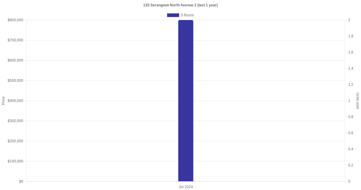 Below is a quick summary of the resale transactions volume and average price trends for the 5 room units at 135 Serangoon North Avenue 2.