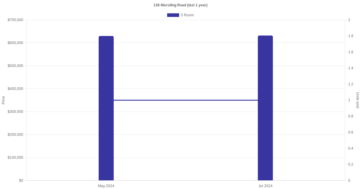 There were a total of 4 resale transactions in the last 3 years for units in block 136 Marsiling Road, with the latest one recorded in Jul 2025.