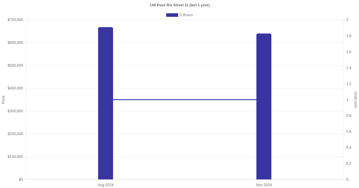 Below is a quick summary of the resale transactions volume and average price trends for the 5 room units at 140 Pasir Ris Street 11.
