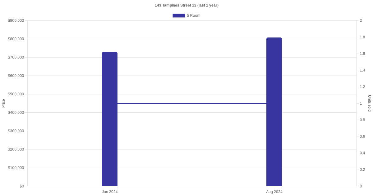 There were a total of 3 resale transactions in the last 3 years for units in block 143 Tampines Street 12, with the latest one recorded in Aug 2024.