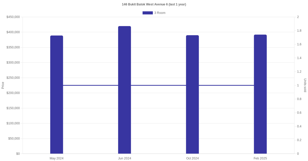 There were a total of 11 resale transactions in the last 3 years for units in block 146 Bukit Batok West Avenue 6, with the latest one recorded in Sep 2025.