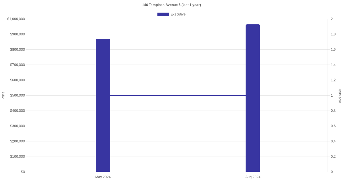 Below is a quick summary of the resale transactions volume and average price trends for the executive units at 146 Tampines Avenue 5.