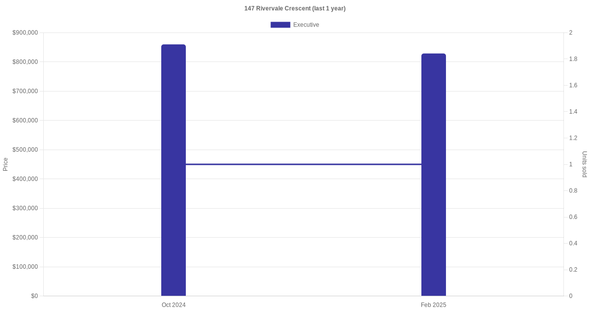 Here's a summary of the rental transactions and price trends for the executive units at 147 Rivervale Crescent.
