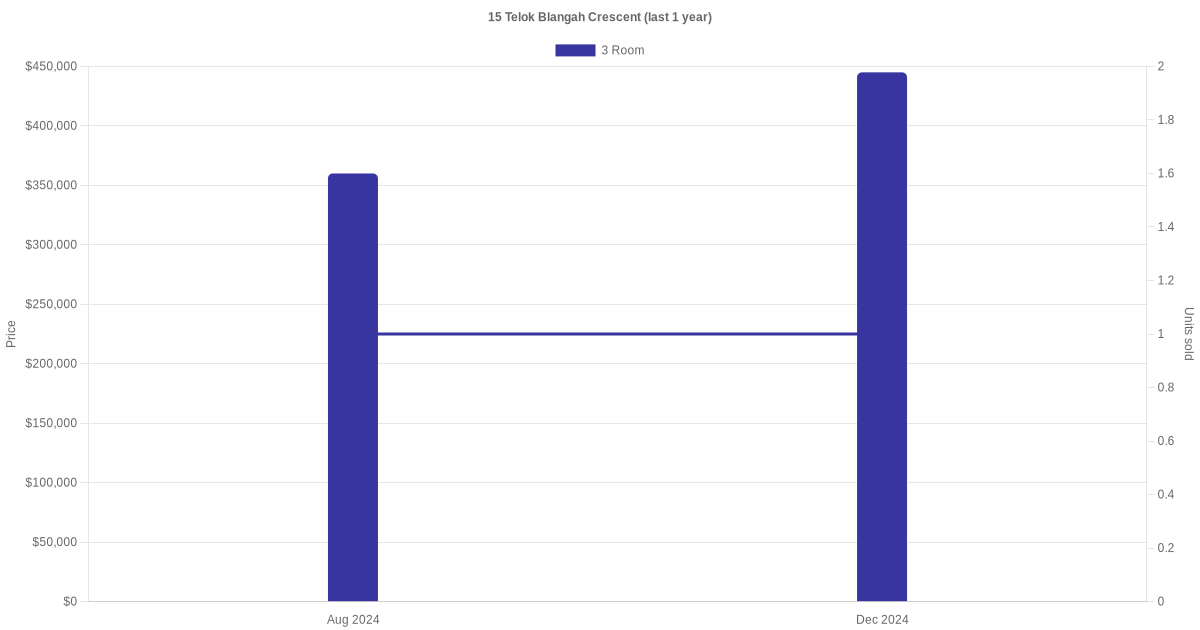 Below is a quick summary of the resale transactions volume and average price trends for the 3 room units at 15 Telok Blangah Crescent.