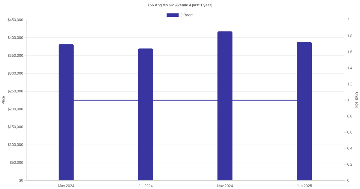 | Dec 2025 | $2,800 | 3 Room | Blk 156 Ang Mo Kio Avenue 4 3 Room | Ang Mo Kio |