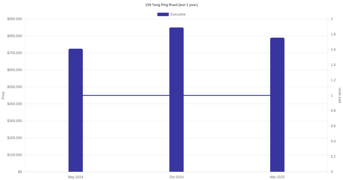Below is a quick summary of the resale transactions volume and average price trends for the executive units at 159 Yung Ping Road.