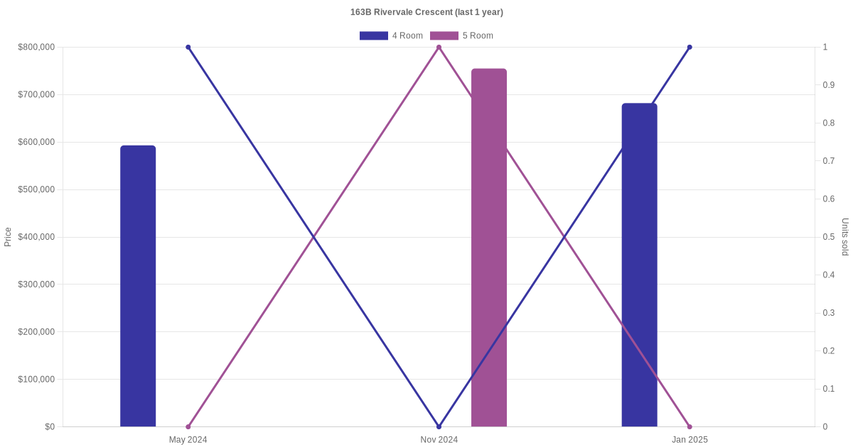 Here's a summary of the rental transactions and price trends for the 4 room and 5 room units at 163B Rivervale Crescent.