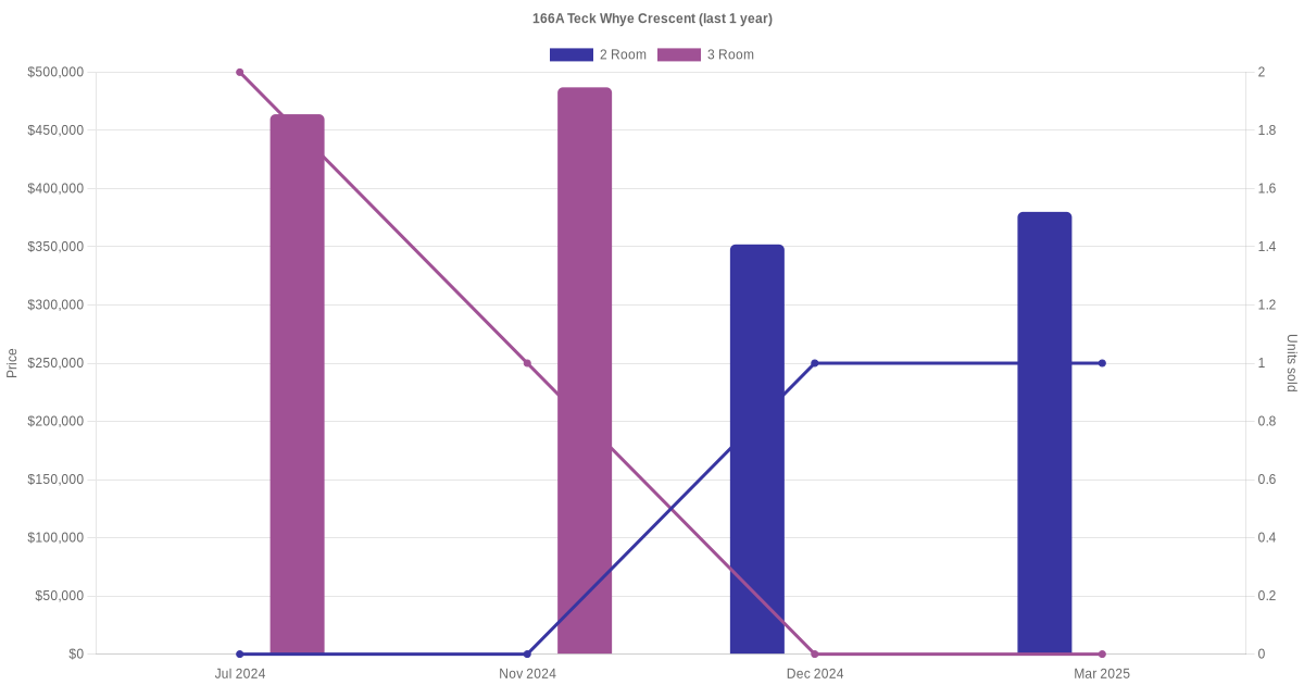 Here's a summary of the rental transactions and price trends for the 2 room and 3 room units at 166A Teck Whye Crescent.
